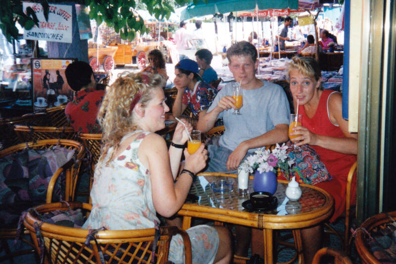 29 juni-13 juli: Tja... tis al een tijdje geleden... ben ervan overtuigd dat ik die hele plaats niet meer zou herkennen mocht ik er nu weer heen gaan. Toerisme stond nog een beetje in de kinderschoenen begin jaren negentig! We gaan met z'n viertjes: Ramon, Robert-Jan, Muriel en ik. Om 03.15 uur worden we opgehaald door de taxi... Om 06.00 uur vertrekken we met Air Holland naar Izmir waar we om 09.45 uur lokale tijd aankomen (tis hier een uur vroeger). Ongeveer twee uur later zijn we in ons appartement Tepe Villas, ziet er echt hartstikke mooi uit met vier balkons en een dakterras.