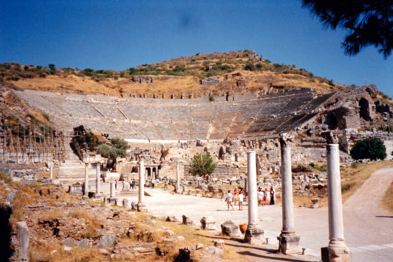 Muriel, Ramon en ik gaan naar Efeze. Eerst met een dolmus en toen met paard en wagen de berg op, heel leuk! Het is een bijbelse stad van ca. 4000 v.Chr. Efeze is het belangrijkste archeologische gebied van Turkije, en een van de grootste opgravingen uit de Griekse oudheid. Het was oorspronkelijk een groep inheemse nederzettingen, gelegen rondom het heiligdom van de grote Aziatische vruchtbaarheidsgodin, Artemis van Efeze genaamd. Efeze beleefde een bloeitijd gedurende het Romeinse Rijk en raakte in verval nadat de Turken in 1420 de stad hadden ingenomen.