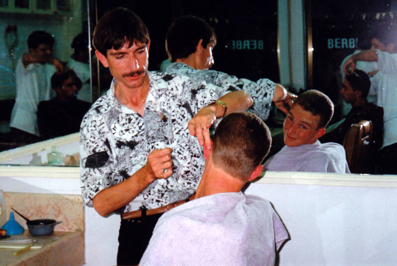 Ramon en Robert-Jan gingen naar de kapper. Dat was nog niet eens zo goedkoop maar je kreeg er wel een massage en vitaminebehandeling bij. De haartjes bij je oren worden weggeschroeid.