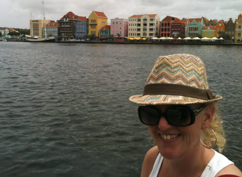 Om 05.00 uur kwamen de buren lallend thuis dus weer wakker.... derhalve zitten we om 08.00 uur dus alweer aan het ontbijt! Tis een beetje bewolkt dus besluiten we om om 09.00 uur de gratis transferbus naar Willemstad te nemen. Tis ongeveer een kwartiertje rijden en om 11.30 uur gaat ie weer terug. Naar de Emmabrug gelopen (deze verbindt Punda met Otrabanda). Als de brug voor de scheepvaart moet worden geopend wordt deze in zijn gehele lengte door de brugwachter naar de walkant van Otrabanda gevaren. De brug is 168 meter lang en de enige drijvende houten draaibrug ter wereld. De brug drijft op 16 pontons. Hier zie je ook de kenmerkende gekleurde handelshuizen.