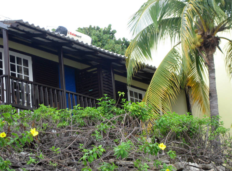 Op de luchthaven gepind, 50 Antilliaanse guldens (ongeveer gelijk aan 'onze' oude gulden) en op naar Lion's Dive Beach Resort. Rond 19.30 uur in de kamer waar blijkt dat we gewoon een kamer met tussendeur hebben..... daar word ik niet blij van want dat is echt super gehorig! Sowieso hebben ze met onze preferenties begane grond en op de hoek helaas niets gedaan. Rondje gelopen om te kijken hoe het er allemaal uit ziet maar vreselijk moe en zere oren dus om 21.00 uur al gaan slapen (voor ons dus 02.00 uur....).