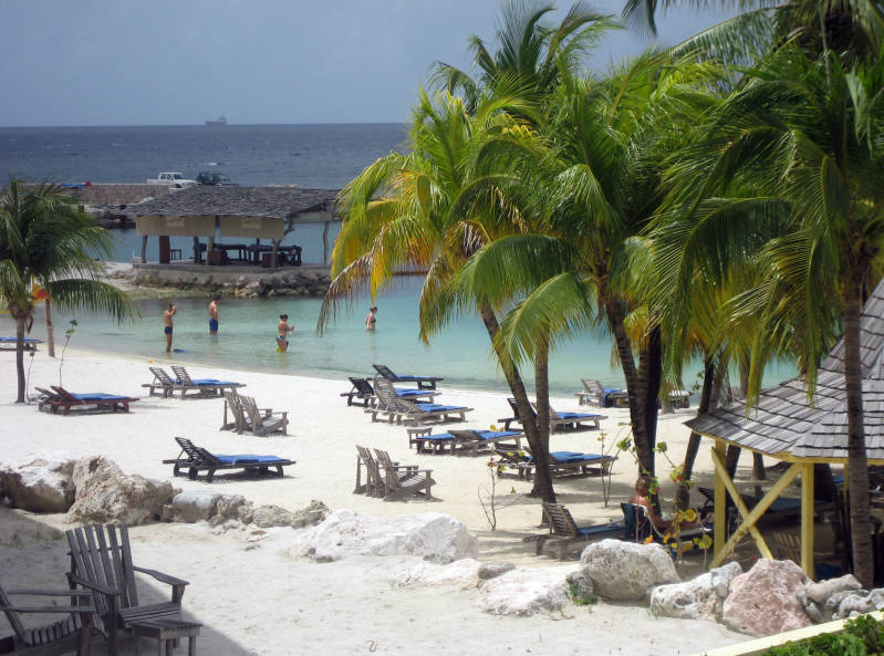 Door St. Christoffel National Park, echt te mooi, het leek de jungle wel met overhangende bomen. Naar Westpunt maar daar zijn we in een poep en een scheet voorbij dus de weg volgend rijden we terug langs Bullen Bay waar we nog meer flamingo's zien. Daarna komen we uit bij een olie raffinaderij dus terug naar Piscadera Bay, veel hotels maar niks waar je even lekker kunt zitten. Ook nog even naar Otrabanda/Willemstad gereden, daar de auto geparkeerd en even geluncht met een tosti deluxe. Naar de Jan Thielbaai, ziet er supergaaf uit en ook even gekeken bij Club Zanzibar. Terug naar het hotel en erg trek in een koud drankje dus op naar de bar.