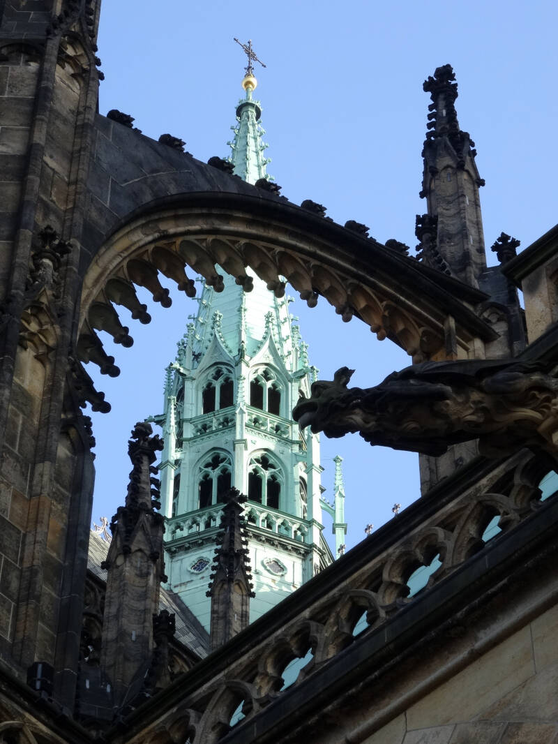 Eerst maar even een broodje gegeten op een vaag terras en doorgelopen naar de Praagse Burcht (Hradcany). Wauw, dat is echt mooi! Wel vre-se-lijk druk maar ala je moet er wat voor over hebben! Deze burcht is een van de grootste gesloten paleizencomplexen ter wereld, alleen de voorzijde is al een halve kilometer lang. Heel veel torens en kerken in verschillende bouwstijlen en het gouden straatje met kleine huisjes waar nu winkeltjes inzitten en waarvan men zegt dat Frans Kafka hier heeft gewoond.