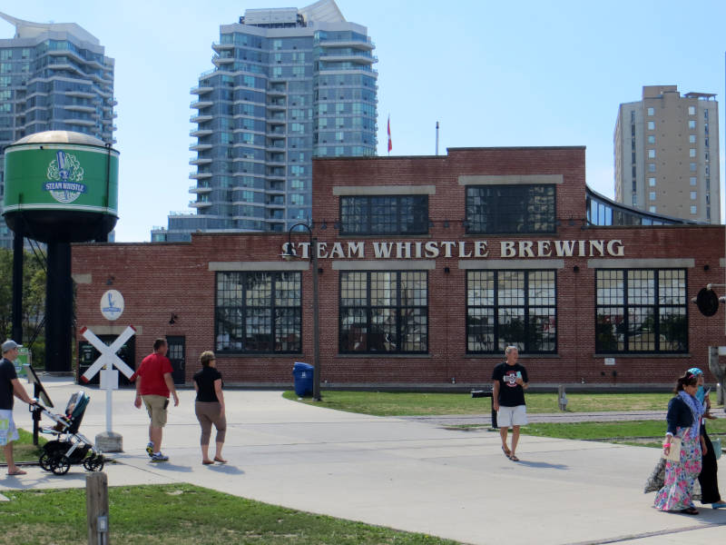 Naast de CN-tower staat Rogers Centre, de thuisbasis van de baseballclub Toronto Blue Jays en ertegenover staan oude treinstellen en de Steam Whistle brouwerij.