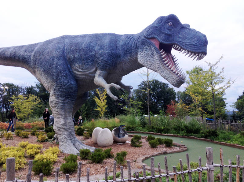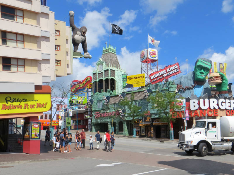 Om 07.00 uur natuurlijk alweer fris & fruitig dus een overheerlijke French toast met banaan bij the PomAnar gegeten. Om 09.50 uur worden we opgehaald voor de transfer naar Niagara Falls. Die duurt ongeveer 1 uur en 3 kwartier. Ons hotel (Days Inn) ligt in het entertainment district Clifton Hill. Je weet gewoon niet wat je ziet daar, het is één grote kermis! Veel neon reclames, spookhuizen, reuzenrad, wassenbeeldenmusea en als hoogtepunt: dinosaurus midgetgolf hahaha.... Gekkenhuis!
