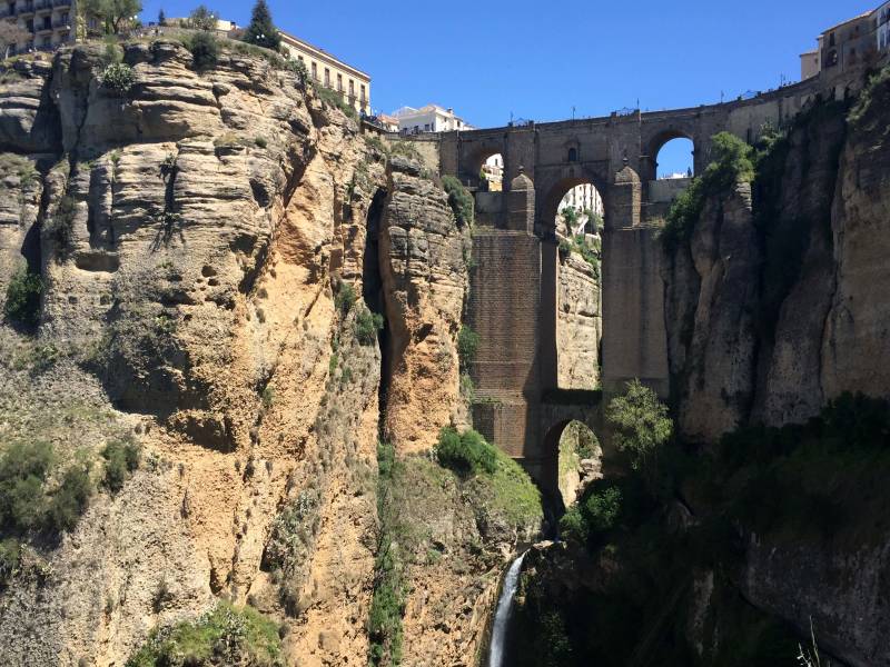 Ontbeten en om half 10 op pad naar Ronda. Het is ongeveer 130km en het plan is om eerst naar het stadje te gaan en daarna naar ons hotel die daar 20km vandaan ligt. De auto geparkeerd, naar het centrum gelopen en bij de Tourist Info een kaartje gehaald. De grootste attractie hier is de Puente Nuevo (Nieuwe Brug) uit de 18e eeuw. De diepe kloof (El Tajo) is meer dan 100 meter diep en verdeelt het stadje in tweeën. Maar mijn god, het lijkt wel of ik thuis ben, hoor alleen maar Nederlands en er staan ik-weet-niet-hoeveel touringcars. Eerst maar even ergens gaan zitten en een broodje tonijn gegeten en daarna de verplichte plaatjes geschoten :-)
