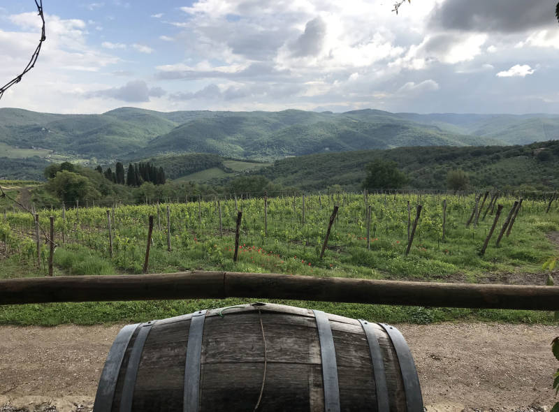 Om 08.00 uur ontbeten, uitgecheckt en om 09.45 uur rijden we richting Radda in Chianti. Het is ongeveer een uur rijden. De Chiantistreek is misschien wel een van de beroemdste streken in Toscane, niet in de laatste plaats door de vele wijnen die in dit gebied geproduceerd worden. Dit wijngebied levert een van de beroemdste en meest geproduceerde kwaliteitswijnen van het land met als beeldmerk de bekende 'gallo nero': de zwarte haan. Het is een streek die tot de verbeelding spreekt: groene heuvels, afgewisseld met indrukwekkende wijngaarden, olijfgaarden en romantische kleine stadjes. Halverwege ergens gestopt voor koffie/thee en rond 11.30 uur aangekomen in Borgo Castelvecchi. Het ligt ongeveer vijf kilometer van Radda in Chianti. Deze accommodatie heeft 20 kamers en appartementen, gelegen in de historische villa of in de omliggende huisjes. Even rondgekeken, het is een oase van rust, schitterend gelegen op een berg. De kamer is uiteraard nog niet klaar dus we besluiten even naar Volpaia te rijden, een dorp vijf kilometer verderop. Hier schijnt een heerlijk restaurant te zijn, Ristorante La Bottega en daar willen we gaan lunchen.