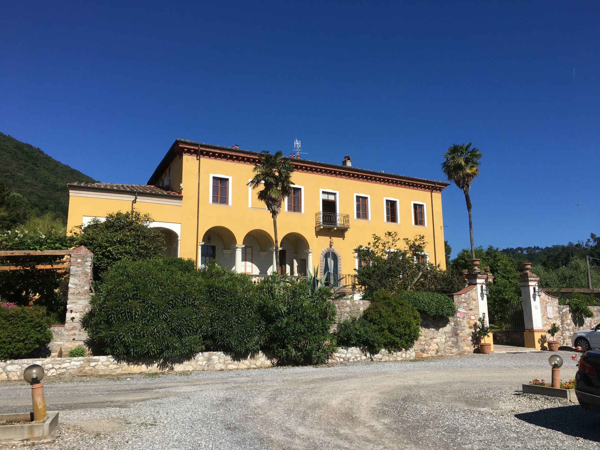 Villa Cheli blijkt een prachtig landhuis te zijn met slechts 18 kamers en is rustig gelegen in de glooiende, groene heuvels tussen Lucca en Pisa. Het is ongeveer vijf kilometer naar het centrum van Lucca (tien minuten rijden). Even een rondje gelopen (tis gelukkig droog) en aan de overkant vinden we Bar Pasticeria Gelateria la Perla. Mooi, tis ondertussen wel tijd voor de middagborrel! Een heerlijke Pecorino gedronken met een stukje pizza! Daarna naar de kamer, koffer uitgepakt want we blijven hier vier nachten en om 19.15 uur gaat het restaurant open. Als voorgerecht samen een plate genomen met ham, kaas en salami, als hoofdgerecht een zeebaars met groenten, daarna een gigantische tiramisu en thee met Amaretto toe. Ja, zo'n eerste dag zijn wij altijd een beetje dol... :-) Das al één extra kilo ben ik bang! Daarnaast is onze ober een super grappige man dus het is geen straf wat langer te blijven zitten!