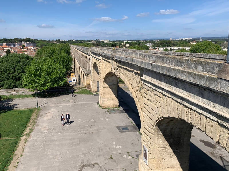 Via het Parc du Peyrou en Place Royale du Peyrou komen we vervolgens bij het historische Aquaduct Saint-Clément (die naar later blijkt, helemaal doorloopt tot aan Domaine Saint-Clement!). Het aquaduct komt uit de 18e eeuw en heeft een Romeinse stijl. Het heeft een bijzondere architectuur met dubbele bogen en is zo’n 22 meter hoog. Door de jaren heen is het grootste deel van het 9 kilometer lange viaduct verloren gegaan.