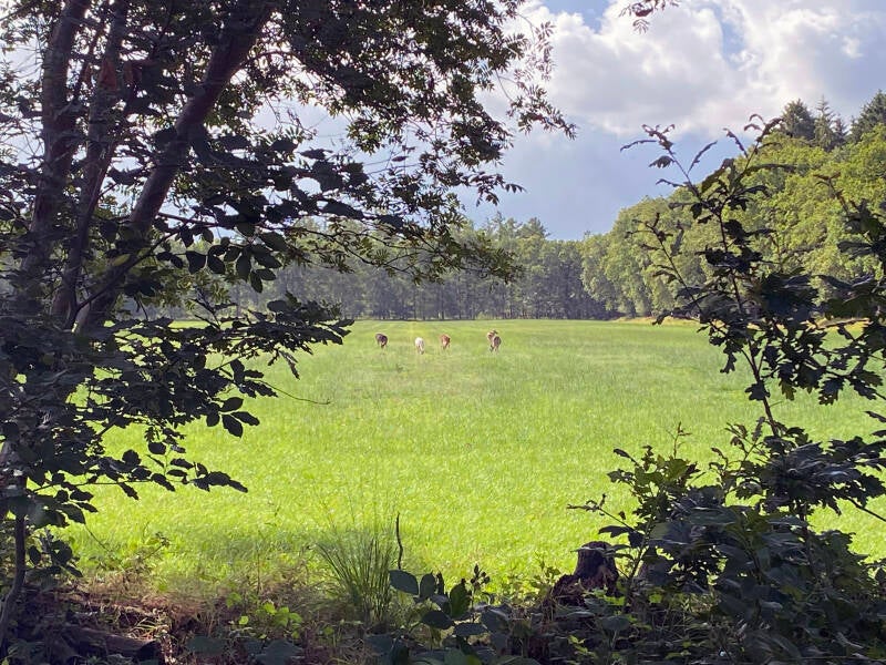 Daarna meteen maar even een rondje gelopen en tot onze verrassing zien we een kudde met hertjes verderop in het veld staan. Er tegenover staat een huisje en die is te koop... ohhhh zo leuk als je dat elke dag als uitzicht hebt!