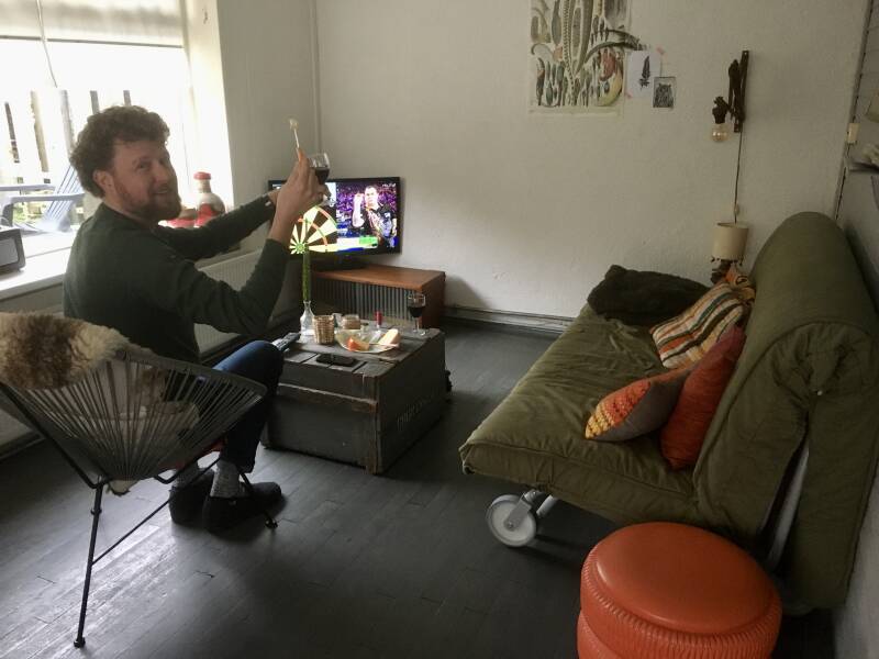 De 27e ben ik weer jarig en bereik een ietwat vervelende leeftijd (vandaar ook de vlucht naar Terschelling hahaha). Maar ik heb buiten mijn schoonouders gerekend die in het voorjaar speciaal langs Mieke zijn gefietst om allerhande attributen voor mijn verjaardag langs te brengen... dus 's ochtends bij het ontbijt word ik al verblijd met slingers en prosecco! We hebben daarna de Midwinter huifkartocht gereserveerd via Puur Terschelling in Oosterend en tot mijn ontsteltenis is de huifkar ook versierd met vlaggetjes. Hoopte nog dat het voor iemand anders zou zijn maar nee hoor, heel die huifkar zingen, vreselijk :-)