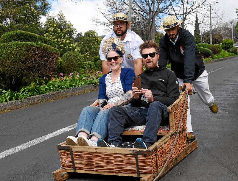 Als je van Monte terug wilt naar Funchal moet je een heeeel eind naar beneden aangezien Funchal een stad is die tegen een berg is opgebouwd. Wij kiezen ervoor om naar beneden te gaan met een zgn. toboggan. Dit is een soort houten slee met een rieten mand erop waar je in kan zitten en zo slee je min of meer naar beneden.