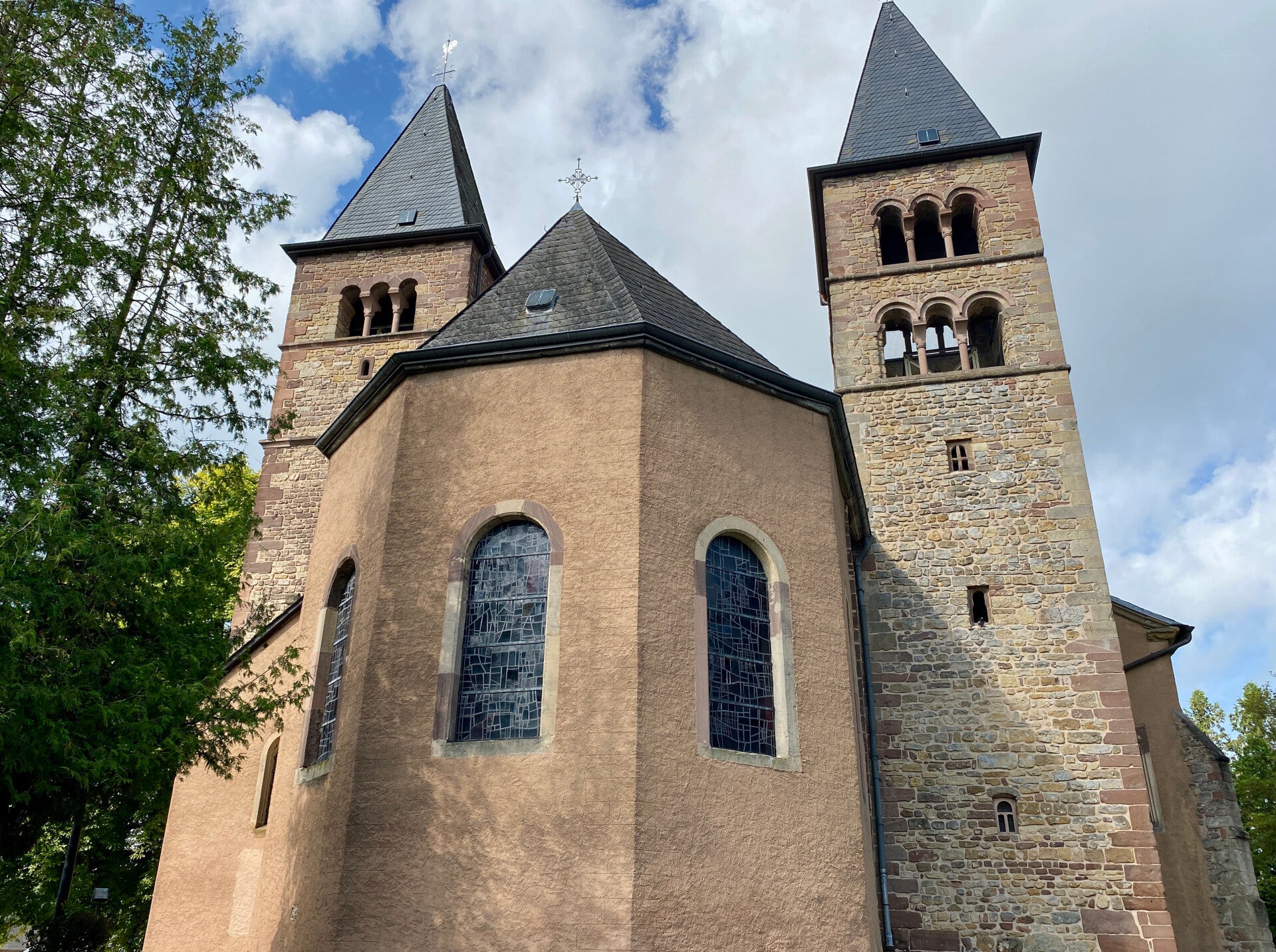 We parkeren de auto (€0,50 per uur voor max. twee uur maar dat is zat). We lopen eerst naar de Tourist Info op het plein voor een plattegrond en bekijken dan de oude basiliek van Sint Willibrordus, die onderdeel is van het oude klooster en waar de restanten van de heilige Willibrordus liggen. Daarna nog even naar de kerk van Sint Peter en Paulus. Er is helemaal niemand en Yoerin blijft ook beneden wachten, vrij spooky om zo in je eentje in zo'n verlaten kerk rond te lopen…