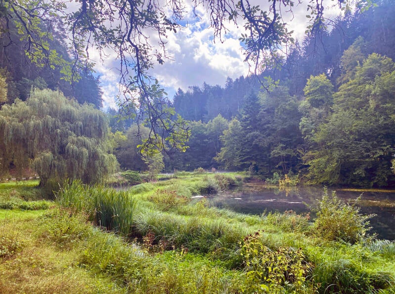 Ondertussen loopt het zweet alweer langs m’n oren dus tijd om te gaan! Yoerin koopt nog even een mega duur broodje bij de plaatselijke bakker en dan gaan we op weg naar Müllerthal, ongeveer een kwartiertje rijden. Müllerthal wordt ook wel Klein Zwitserland genoemd. De regio staat bekend om de prachtige natuur vol valleien, dichtbeboste wouden, grotten, bijzondere rotsformaties en beekjes met watervallen. Het gebied heeft veel wandelpaden waaronder de bekende Müllerthal Trail die zo'n 112 km lang is.