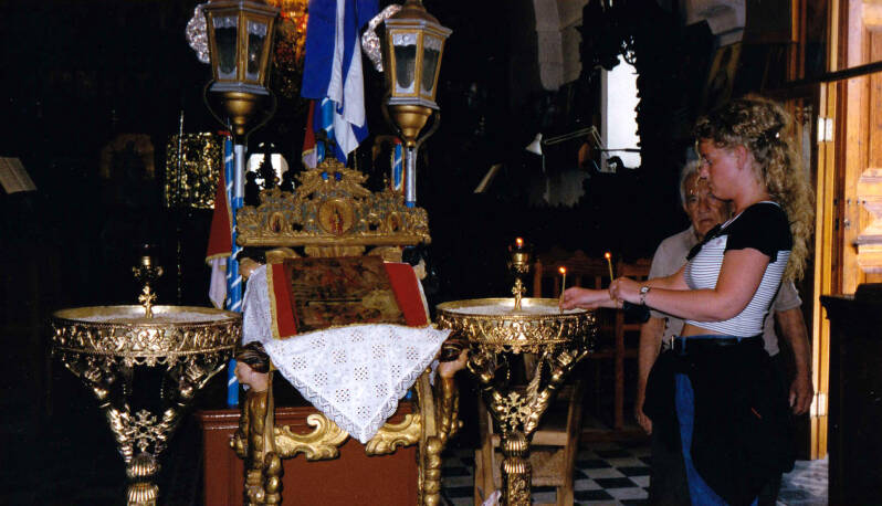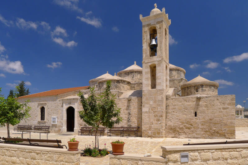 In 1996 zijn we ook nog in Kiti geweest. In ons Cyprus wat & waar boekje stond dat dat zeker de moeite waard was om te bezoeken. Dat viel dus tegen... Het enige wat er te zien was is de kerk Panayia Angelostikos (gebouwd door engelen). De kerk stamt uit de elfde eeuw. Het mozaïek in de apsis wordt beschouwd als het mooiste van Cyprus. Terwijl wij braaf op de bus zaten te wachten die ons terug zou brengen naar de bewoonde wereld, reed die om onverklaarbare redenen door... Aangezien ze in Kiti ook geen taxi's hebben was de enige oplossing een taxi uit Larnaca laten komen...